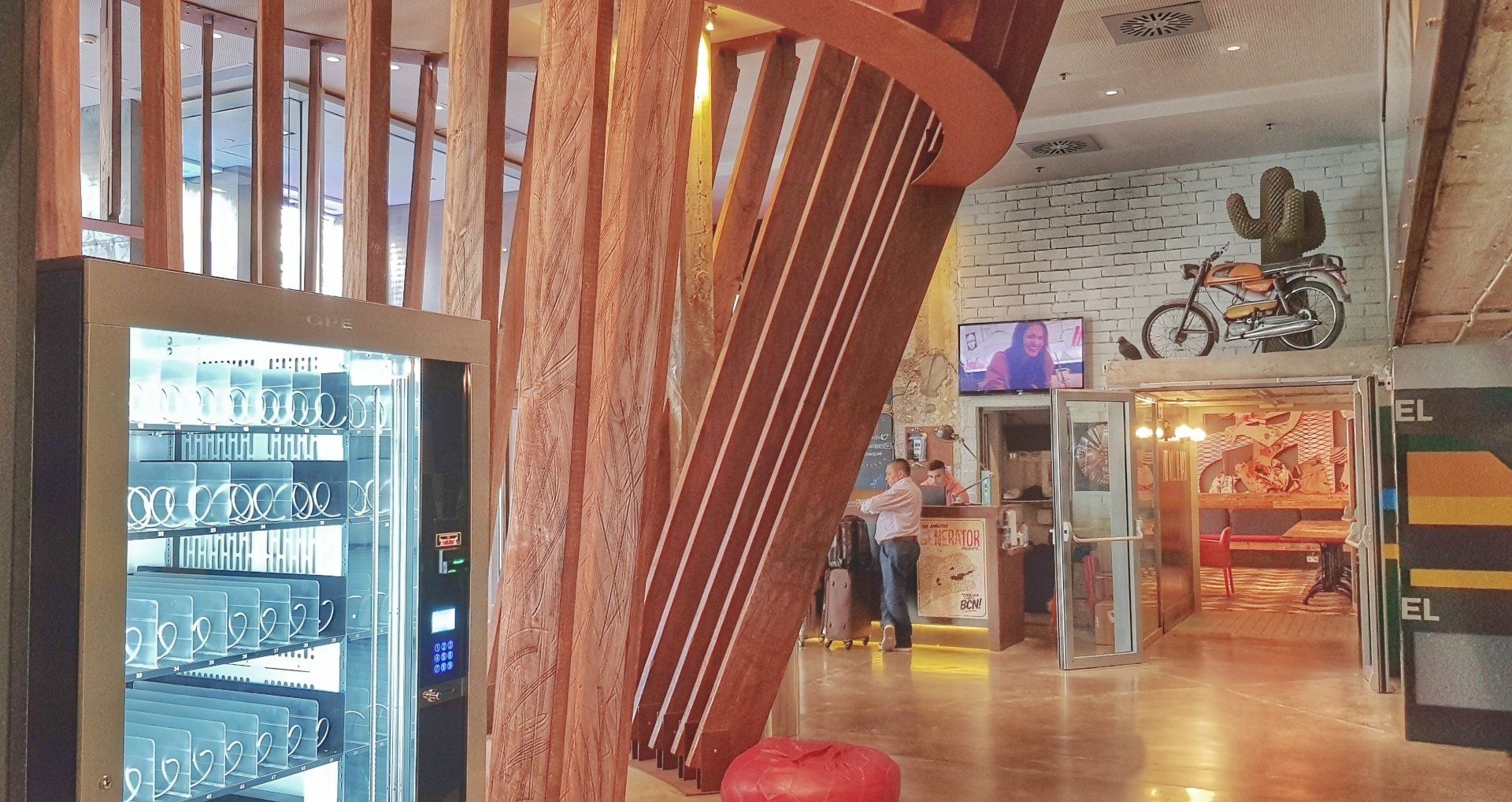 Máquinas expendedoras de platos precocinados con módulos de hornos anexos y suministro complementos.